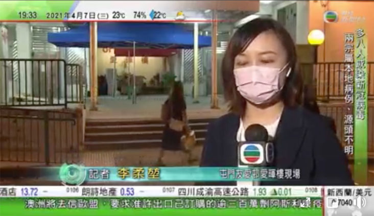 於數小時前,政府宣佈屯門友愛邨愛暉樓及山景邨景富樓高座需強制檢測。事件發生一個小插曲,話說無綫新聞在現場做直播時,遭市民在背後大叫「食屎啦無綫」,記者似乎嚇咗一嚇,震咗音之後再繼續做直播。可惜的是,有市民更走到鏡頭前面疑似舉中指。記者似乎再一次被嚇,主播其後終於中斷直播。