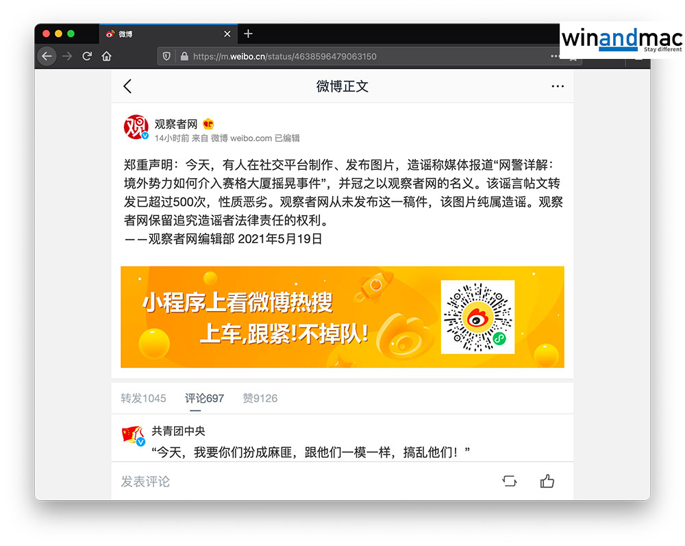 觀察者網其後發表聲明,指「觀察者網從未發佈這一稿件,該圖片純屬造謠。觀察者網保留追究造謠者法律責任的權利。」至於為什麼有人在轉發有關文章時,該網址可以做到是來自觀察者網域名guancha.cn,則不得而知。