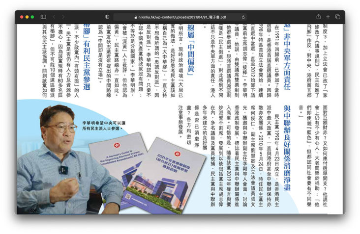 正式投共:民主黨李華明接受黨媒堅雜誌訪問  認為作為政黨不可能不參選