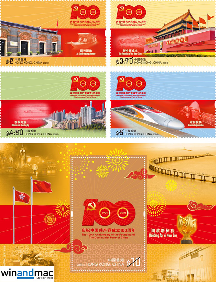 很多香港人擔心,大陸用字會在香港愈來愈流行,亦有人擔心甚至不久將來,香港不再使用繁體字。香港郵政今日宣佈,將於7.1發行紀念郵票,慶祝中國共產黨成立一百週年,當中已率先使用簡體字寫上「庆祝中国共产党成立100周年」,並用上極配合中共風格設計,完全與大陸接軌。只有旁邊的細字「開天闢地」、「新中國成立」、「改革開放」、「走向復興」、「開啟新征程」,仍然使用繁體字。