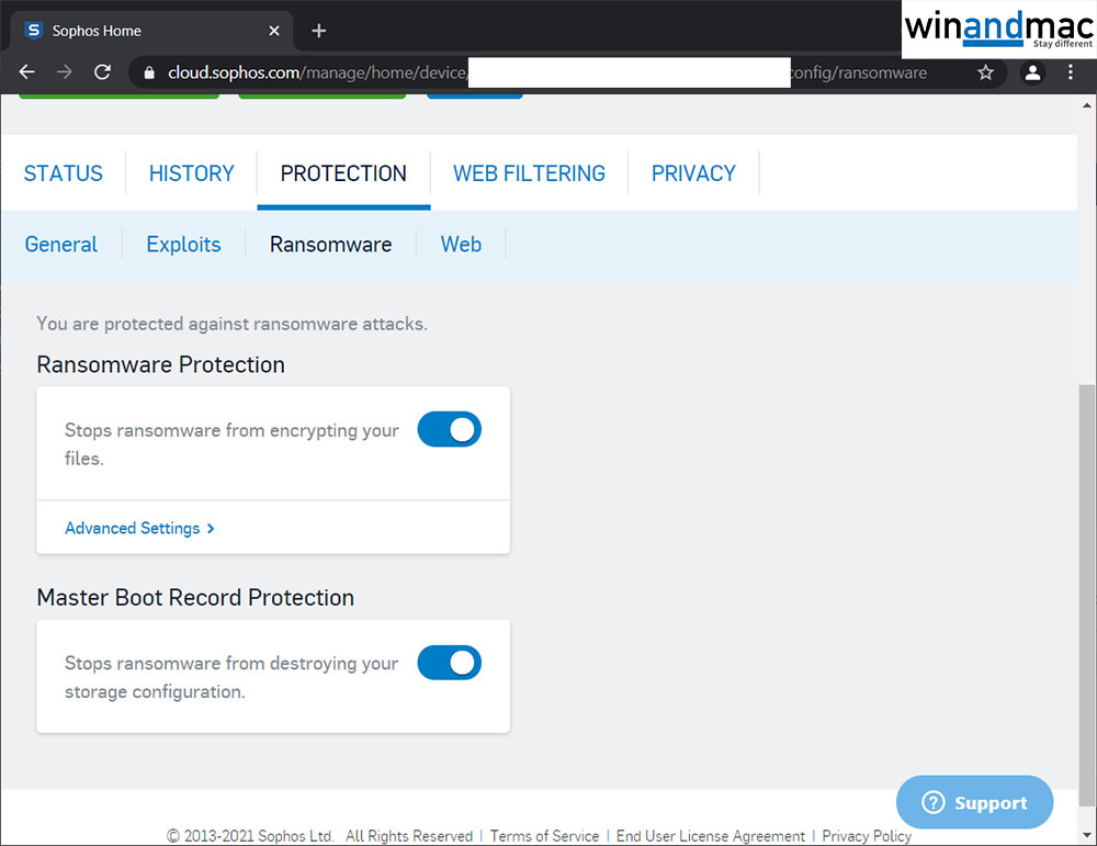 用家可以在網站直接更改不同的設定,當中的選項很多,可以見到有相當充足的保護,減少系統受不同的安全威脅。小編覺得在眾多選項中,於Protection分頁下的Web的Browser protection for safe online banking很有用,當中提供選項可以防止惡意程式擷取用家按了那些按鍵,避免被偷取登入密碼。另外,在Ransomware下,也提供選項可以避免綁架程式綁架電腦,避免中招連Windows都入唔到。一些惡意程式可以不用開啟指示燈啟動視像鏡頭,偷拍你自己,Sophos就提供保障,一旦有人無故開啟視像鏡頭會通知用戶。