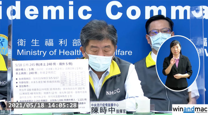 台灣衛生福利部公佈台灣當地疫情,數字較昨天下跌,新增240宗台灣本土、5宗境外輸入。中臺北茶藝館88宗、萬華區活動史67宗、某社團相關群聚2宗、進香團2宗、宜蘭遊藝場1宗。至於群聚關聯不明51宗、疫調中29宗。另外,亦新增兩宗死亡個案。