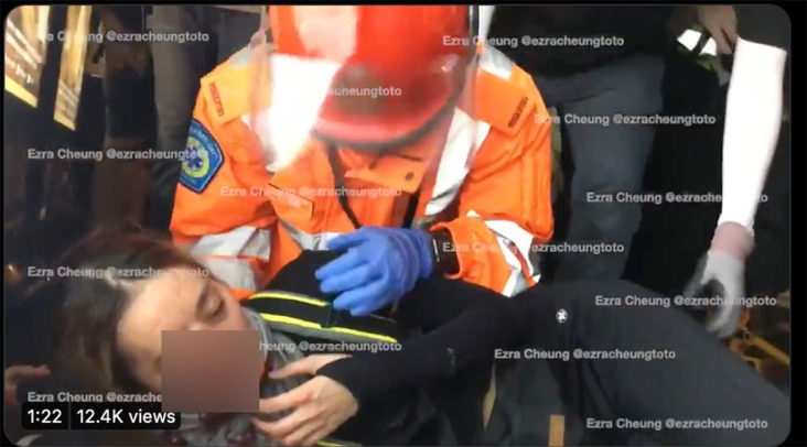 記者Ezra Cheung日前在Twitter上載了當時事發高清片段,指片段是在2019年8月11日7:25pm拍攝,可以看到爆眼女的眼晴爆血的情況,明顯被警方布袋彈所擊傷。