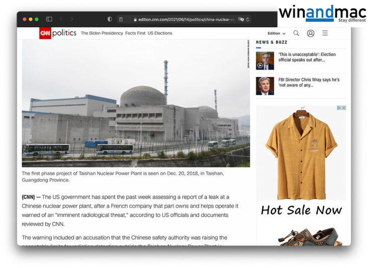 根據CNN報道指,美國收到情報發現,中國有核電廠發生洩漏,地點就在香港以西的台山,美國有關當局在過去一星期正分析有關報告。據稱,法國一間向核電廠提供的零件的公司Framatome,早前已警告有逼切性的洩漏危險。報道更指,中國為求掩飾問題,竟然不停調高可接受的核洩漏的標準,以避免核電廠關閉。