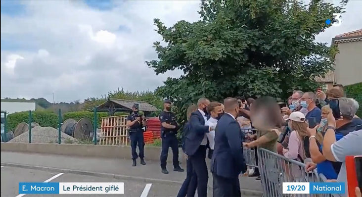 法國總統馬克龍Emmanuel Macron於星期二,探訪法國東南部Tain-l’Hermitage一個地方見市民時,一位穿著綠衫的市民跟他握手,但突然兜巴星,並大叫Montjoie, Saint-Denis及A bas la Macronie,A bas la Macronie中文意思即係叫馬克龍政府下台。據當地法國傳媒報道,暫時動機未明,但保安已及時制止,兩名人士包括兜巴星的男子已被捕。