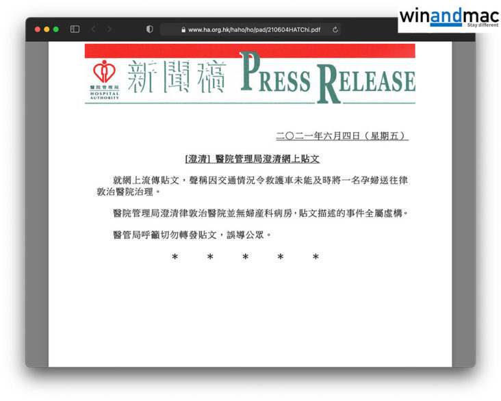 日前6月4日警察在三條過海隧道都設置路障,截查車輛,網上有人再翻抄上述這篇潮文,指有孕婦因過海隧道被阻塞,致救護車受阻,令其無法被送往律敦治醫院治理。醫院管理局今次就急住澄清,澄清律敦治醫院並無婦産科病房,貼文描述的事件全屬虛構。他們呼籲切勿轉發貼文,誤導公眾。警方當然也有因為此事,急住澄清無此事。