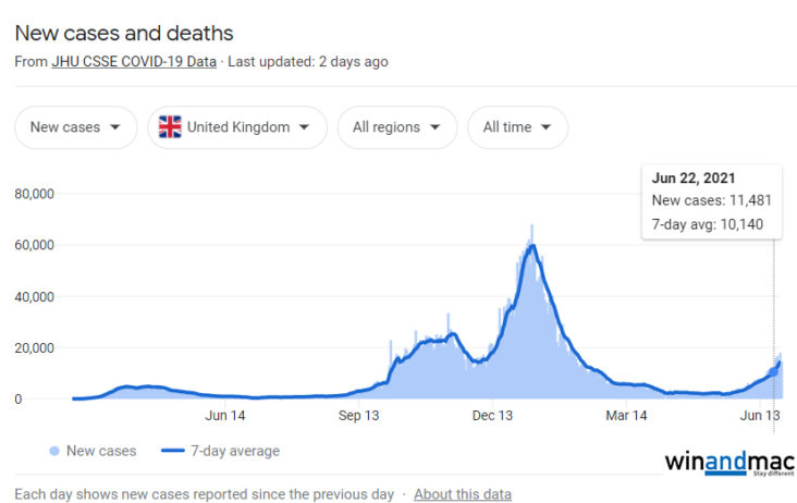 英國近日確診個案略為上升,香港政府較早前正式宣佈,由7月1日起將禁止英國客機來港。政府在通知中表示,過去數天,本港持續發現有從英國帶有變異病毒株的輸入個案,而由於相關輸入個案數字已觸及政府的機制,政府會由七月一日起就英國實施地區性航班「熔斷機制」並指明英國為A1組指明地區,亦即限制曾逗留於英國超過兩小時的人士,登上任何來港的民航客機。轉機當然也不行。