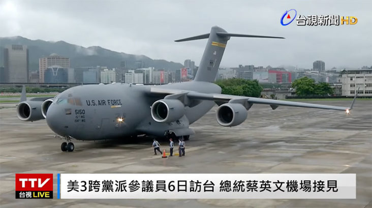 三名參議員今次更是乘坐美國的C-17軍用運輸機去台灣,今次訪問只是3小時,亦只限於松指部機場貴賓室,以配合目前嚴緊的防疫要求。美國在台協會表示,今次跨黨派訪問團將與台灣高層就美台關係、區域安全、及其他共同利益等重要議題交換意見。美國亦藉今次訪問正式宣佈,宣布向台捐贈75萬劑疫苗。
