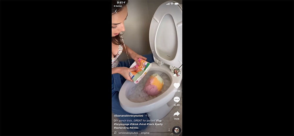 美國抖音一直有人指教壞人,經常有古怪的挑戰和影片出現。外國YouTuber Jarvis Johson(上圖左)最近就發現,在抖音中有美國人拍攝影片,竟然用真如廁的馬桶去整雪糕飲品,聲稱為Toilet Bowl Hack系列。該美國女士在真馬桶中倒入冰塊,並放入雪糕,然後再在原本係廁所水的部份倒入汽水等。該女士聲稱儲存廁所水箱已洗乾淨,但Jarvis Johnson指明明看到影片中仍然有明顯的污漬。最恐怖的是,該美國女士完成這款獨特的馬桶Fruit Punch後,竟然把這些飲品俾朋友飲。要朋友問這款飲品究竟點整,該女士才承認是在真馬桶內整出黎,但女士強調已清潔馬桶後才製作。