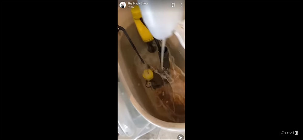 除了整飲品外,Jarvis亦發現有人在Snapchat製作類似影片,但就用真馬桶去洗頭。該影片中有兩名女士,一名女士把頭髮放入真馬桶內,另一名女士則在儲存廁所水箱倒入洗頭水。該名女士不停強調十分軟淨和感覺良好,因為一沖廁時洗頭水就會沖出來,頭髮就會被洗乾淨。