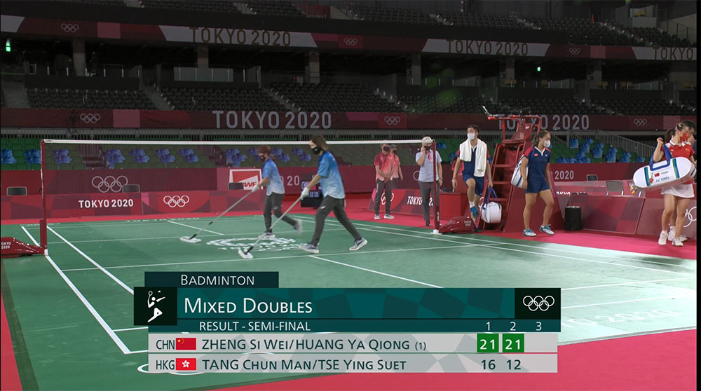 東京奧運羽毛球混雙準決賽中,香港代表鄧俊文、謝影雪不敵中國的黃雅琼與鄭思維,無機會明天的決賽,但仍有機會與日本組合對戰爭取銅牌。香港代隊一開始已落後,雖然其後曾試過追至17:15,但最終以21:16先輸第一局。第二局表現似乎未有進展,結果再以21:12輸第二局。