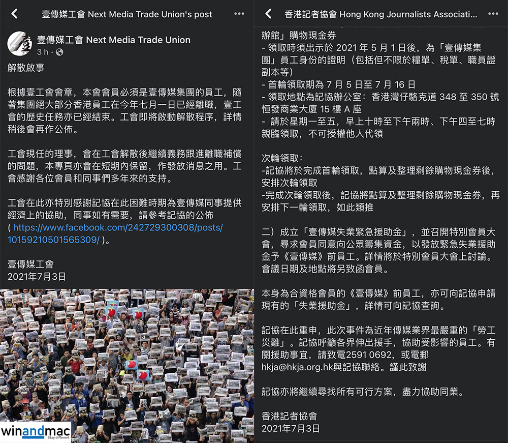 壹傳媒旗下的刊物停刊已有一段時間,而其歷史悠久的壹傳媒工會於日前亦宣佈將解散。他們表示,根據壹工會會章,該會的會員必需是壹傳媒集團的員工。現在,隨著集團絕大部分香港員工在今年7月1日已經離職,壹工會的歷史任務亦已經結束。工會即將啟動解散程序,詳情稍後會再作公佈。