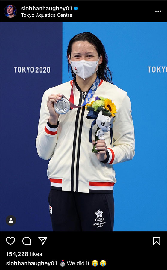 已為香港取得兩面東京奧運銀牌的何詩蓓,日前參加女子50米自由泳預賽時,以24秒75、排名第15的成績成功進入準決賽。唯後來宣佈因為受傷,覺得臀部與腳有痛賽,自己主項200米與100米已完成,長遠考慮選擇退賽。不過,她就選擇繼續與隊友參加女子4×100米混合泳接力預賽。可惜在第二組取得第七名成績,總成績排名為13,未能晉身決賽。