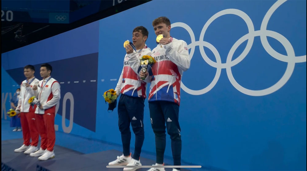 中國一直期望在東京奧運跳水項目中,橫掃八面金牌,可惜這個中國夢被英國隊擊敗。男子雙人高台跳水項目中,英國27歲的Tom Daley與23歲的Matty Lee擊敗中國隊,以一分之微勝出,成功獲得金牌。Tom Daley在台上表現激動,不停口中講無法相信自己勝出,其後與自己另一半Dustin Lance Black以視像通話。事實上,中國這隊夢之隊在比賽前確實大熱,不少人都睇好中國隊的曹緣與陳艾森,可惜最終輸俾英國隊。