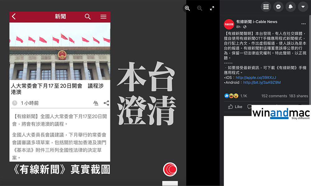 有線新聞其後發表聲明,指有關圖片為合成。有線稱,有人在社交媒體,擅自使用有線新聞OTT手機應用程式新聞模式,自行配上內文,作出虛假報道,使人誤以為是本台的報道。有線新聞對這種蓄意誤導公眾的行為,保留一切法律追究權利。特此聲明,以正視聽。