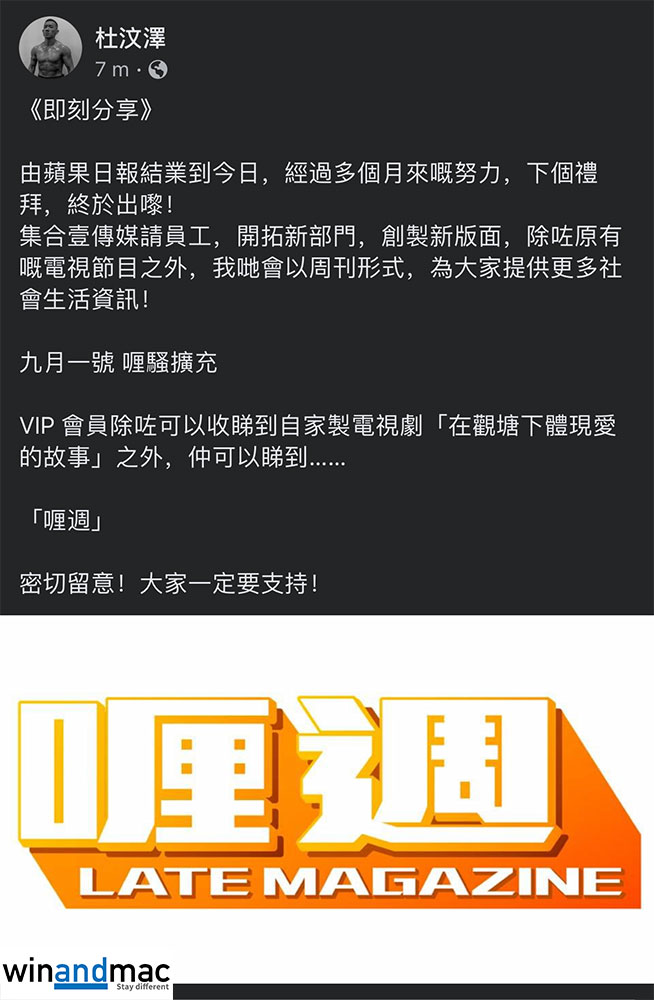 杜汶澤早前在蘋果日報被逼結業時,宣佈願意聘請部份果籽員工開新版面,但其後又指蘋果《果籽》舊同事好搶手﹐婉拒了他的邀請。不過,或者是因為蘋果日報員工其實不少,杜汶澤似乎終於找到方法。他稱由蘋果日報結業到今日,經過多個月來嘅努力,現正式宣佈於9月1日推新版面「喱週」。杜汶澤稱集合壹傳媒請員工,開拓新部門。新版面「喱週」將以週刊形式,為大家提供更多社會生活資訊。