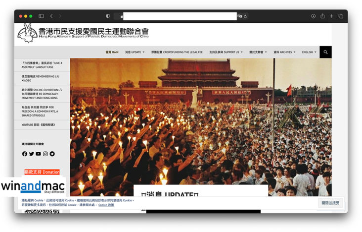 支聯會網站、Facebook、Twitter、Instagram、YouTube頻道如今已全部被刪除,天安門母親、中國維權人士的影片、支聯會創辦人之一司徒華發言片段等,已經無法再瀏覽。