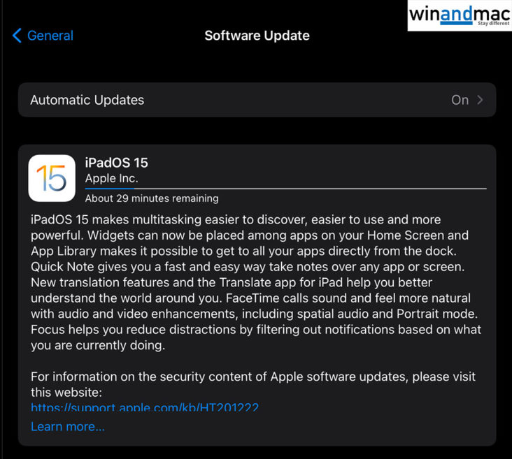 與過往最不同的地方,是蘋果今次允許用家自行選擇是否升級。用家在軟件更新中,下方會顯示為Also Available,用家可自行選擇是否真的要升級至iOS 15或iPadOS 15,抑或繼續使用iOS 14或iPadOS 14。