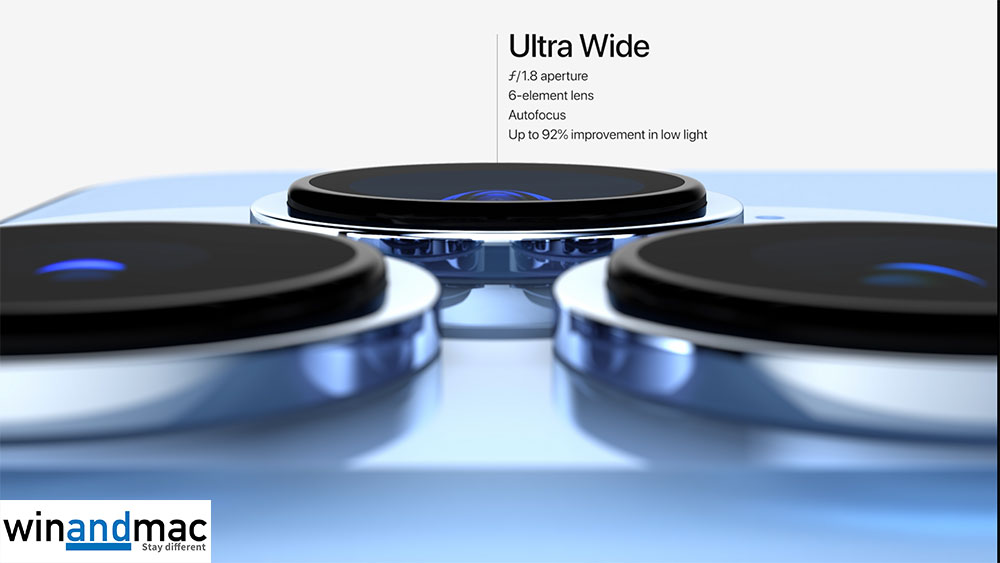 iPhone 13 Pro的120Hz螢幕會按情況而改變頻率,例如在瀏覽文字時變成120Hz,睇得更加舒適,讓用戶使用時有更好的體驗。機背的超廣角鏡頭在面對低光時的表現,也提升了92%。廣角鏡的表現,也提升了2.2倍。iPhone 13 Pro的鏡頭也支援專業的ProRes格式,並可以用來拍攝4K。當然,新的iPhone 13 Pro也支援Cinematic Mode拍攝。