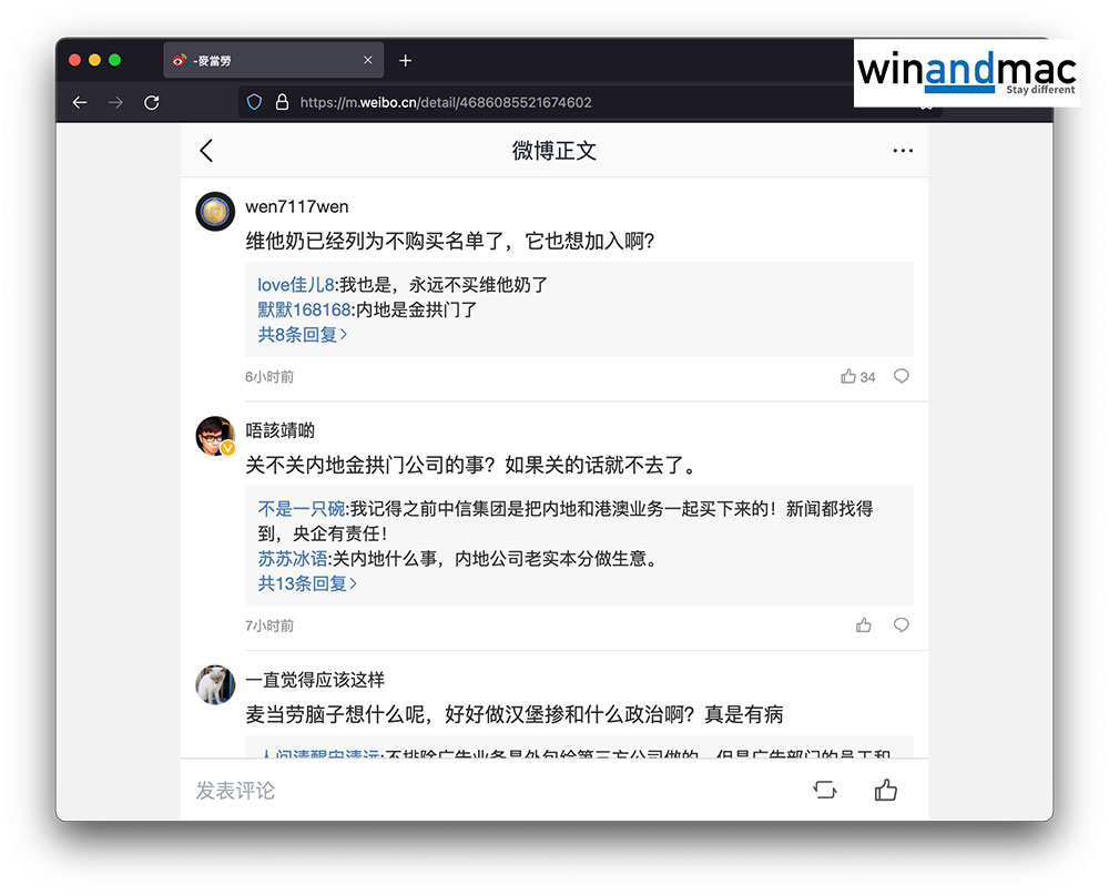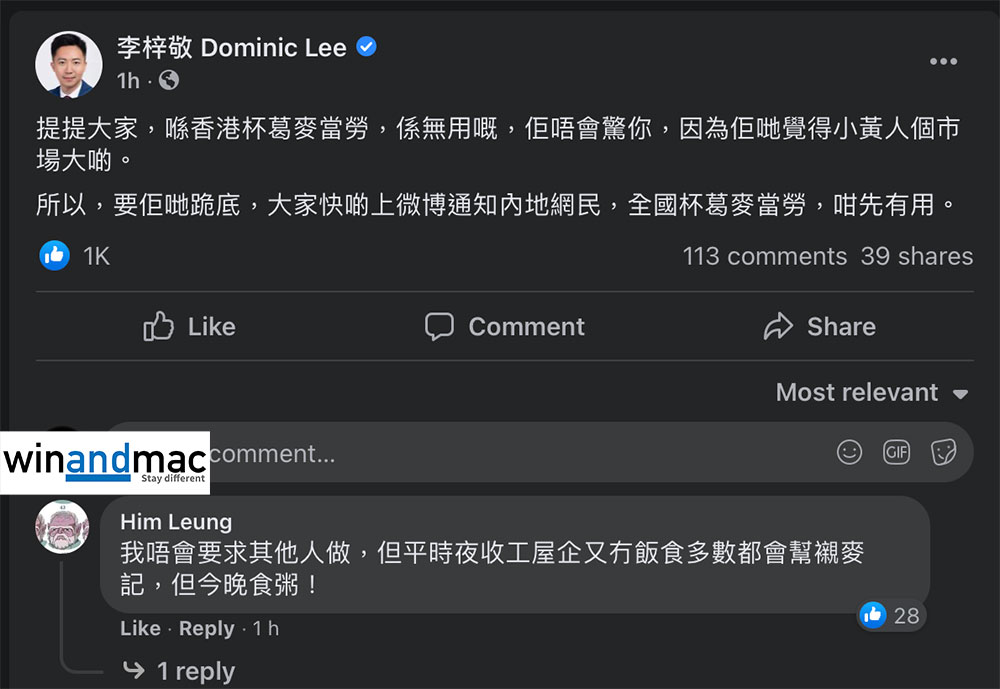 雖然內文寫住係無糖可口可樂,又叫大家冷靜,但消息傳到藍絲建制陣營後,引起極大迴響。李梓敬呼籲杯葛,但隨即有藍絲網民指「唔會要求其他人做」,一位網名叫屈穎妍的人把事件放上微博引發討論。另外,大量藍絲衝入香港麥當勞Facebook狂罵,稱他們涼薄,並要求出來解釋。他們又指是維他奶翻版,威脅麥當勞「要輸得起」。