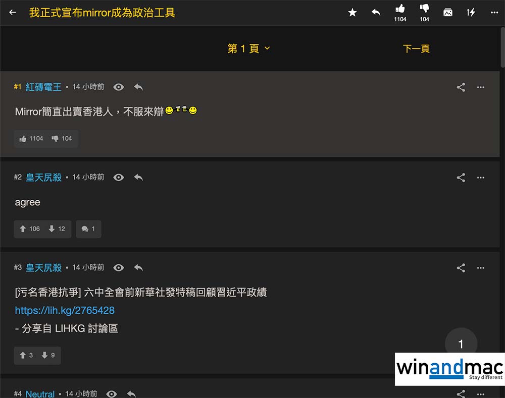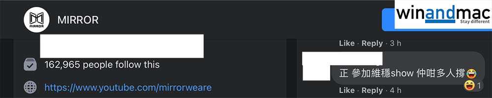 消息公佈後,各大網絡討論區都引發討論,質疑MIRROR參加政府維穩show,MIRROR官方Facebook亦不時有人留言,「正參加維穩show仲咁多人撐」。不過,MIRROR的fans支持度強烈,有關負面留言極速被支持者蓋過。