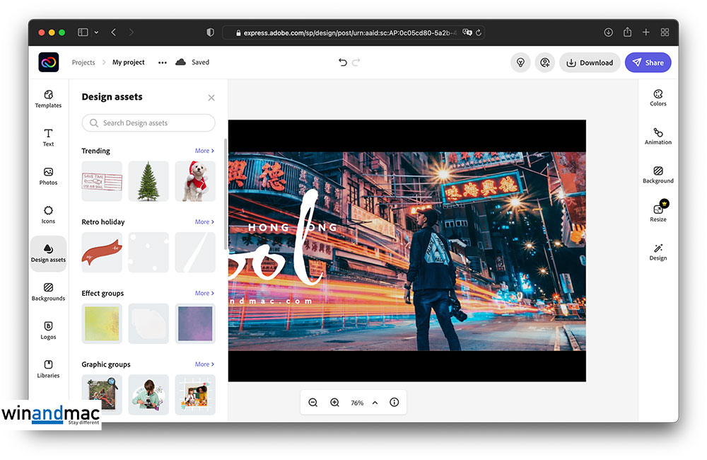 正如剛才所述,只要登記戶口後就能免費使用Adobe Creative Cloud Express,完成創作後可以按Download下載完成品。若本身使用Creative Cloud Single App或Creative Cloud All Apps,可以使用更多範本。