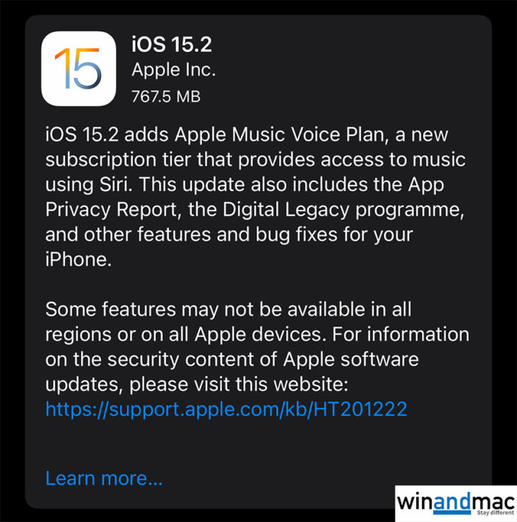 iOS 15.2正式版當然也有不少修正,有需要用家可以在備份資料後自行免費更新。