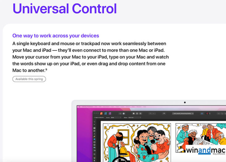 蘋果早前推出macOS Monterey更新,唯當中承諾會在年底推出的Universal Control功能,又再一次唔見影。查看官方蘋果網站後,發現當中的日期又再更改,表示要推遲至下年春季才有機會用到。