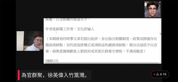 經歷過《蘋果》、《立場新聞》、《眾新聞》等事件後,仍然在運作中的傳媒或多或少都會有點擔心。曾志豪於日前的網上Live Show中提到,網民發現明報的時事評論文章,每一篇最尾突然加上一段長的「頭盔」字句:「本網發表的時事文章若提出批評,旨在指出相關制度、政策或措施存在錯誤或缺點,目的是促使矯正或消除這些錯誤或缺點,循合法途徑予以改善,絕無意圖煽動他人對政府或其他社群產生憎恨、不滿或敵意」。