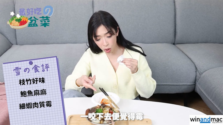 雪姨一開始試食基隆茶餐廳的時候,就稱「相當普通」,又指「我寧願食咖哩雞扒飯」。她一開始稱枝竹好味,然後稱鮑魚麻麻,接著到試食蝦的時候就有強烈的反應,稱蝦肉質「霉」,又指肉質是「成pat泥」。她續指「唔值HK$128」,然後她再批評髮菜不足。批評一大輪之後,就突然轉去賣「護髮產品」廣告。