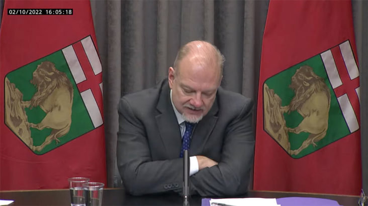 這幾天加拿大正面對貨車司機就硬性要打針的規定而示威,曼省政府代表(上圖)被問到是否因為示威者正行到曼省,而決定放寬。曼省政府代表否認,指數星期前已有取消防疫規定的打算。