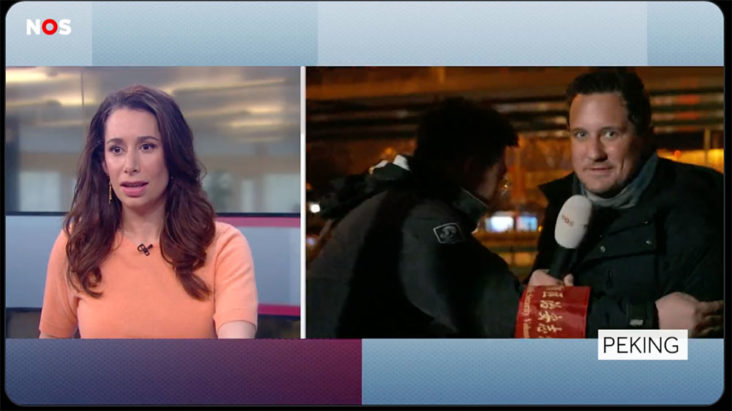 Onze correspondent @sjoerddendaas werd om 12.00u live in het NOS Journaal door beveiligers voor de camera weggetrokken. Helaas is dit steeds vaker de dagelijkse realiteit voor journalisten in China. Hij is in orde en kon zijn verhaal gelukkig een paar minuten later afmaken pic.twitter.com/GLTZRlZV96