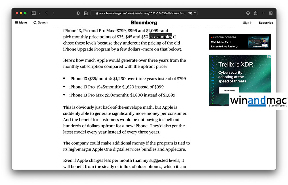 Bloomberg早前報道指,蘋果或許會推出iPhone月租租機計劃,用家只要付一個月費,就可以永遠都能享用最新的iPhone硬件。對於經常要最快最新硬件的用戶來說,有一定的吸引力。記者Mark Gurman於星期日的Newsletter中再談論有關事情,香港一些傳媒都有報道,但被誤解成Bloomberg透露iPhone月租月費計劃由US$35起跳,事實上只是記者估計。