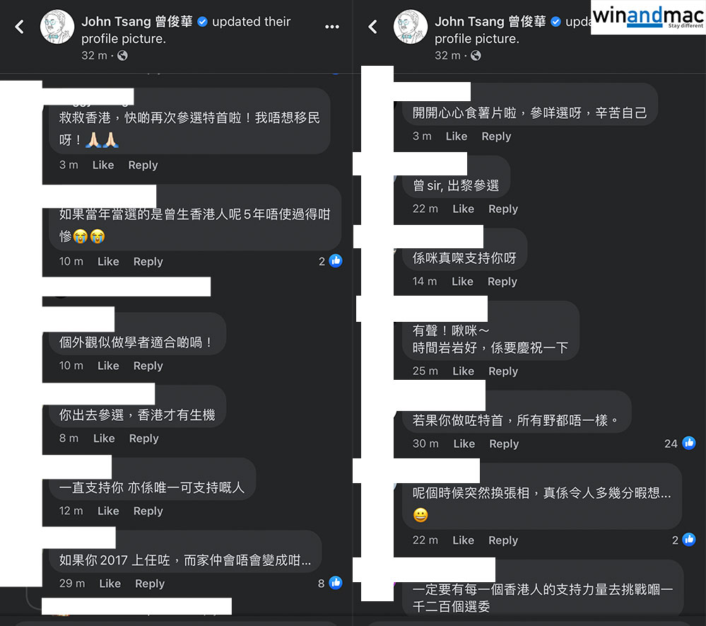 林鄭宣佈不會連任特首的一刻,引發不少人的討論,亦有人開始擔心,坊間傳言李家超將參選特首的報道成真的話,香港未來會變成怎樣。沒想到在這個時候,薯片叔叔曾俊華突然在林鄭記者會舉行的時候,更換官方Facebook頭像之餘亦更換背景,引發不少人猜測。很多網民留言,以為曾俊華打算再參選行政長官,亦有人求曾俊華出山,「我唔想移民呀!」。
