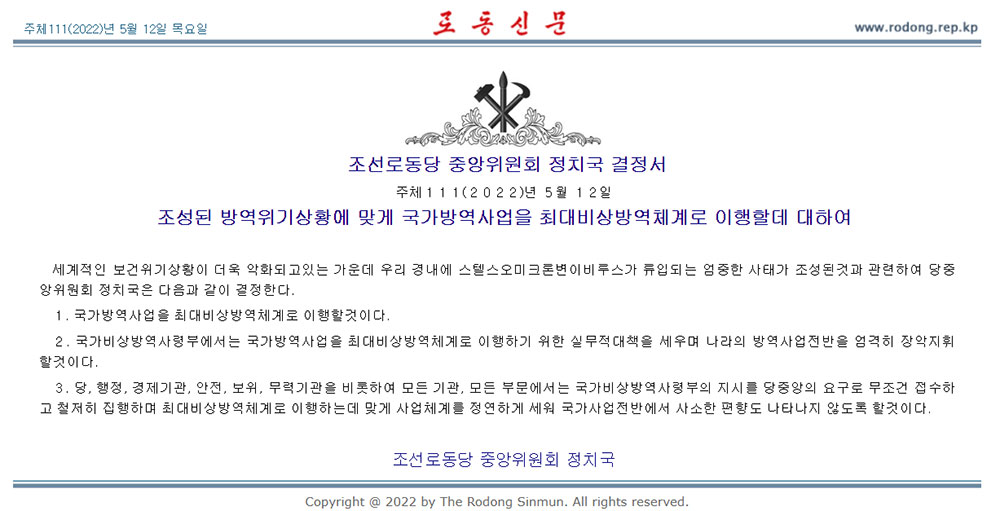 武漢肺炎發生初期,北韓就極速於2020年1月時開始封關,並一直向國際聲稱他們「零確診」,金正恩對於北韓沒有一宗個案而感到光輝成就。唯北韓官方今日首次向外發出稿件,承認國內出現首宗個案,為Omicron變異珠。
