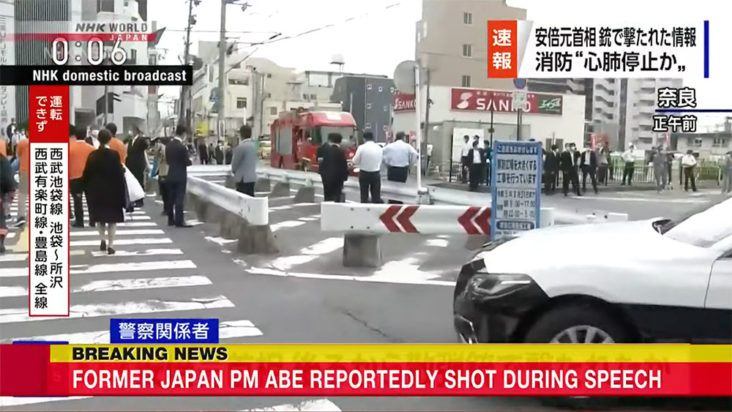 據日本傳媒報道,前日本首相安倍晉三在今早7月8日,於奈良縣演講時,突然倒下出血,據稱現場曾傳出懷疑槍聲。有報道更指,安倍晉三曾心肺停止。