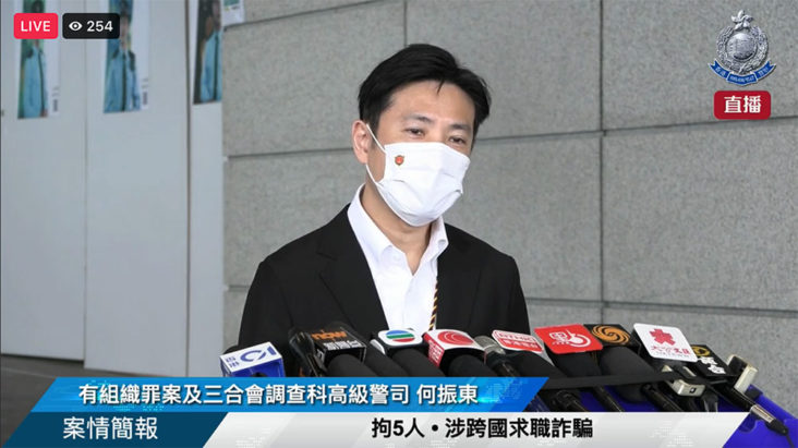 香港警方宣佈,就有關柬埔寨的詐騙案,他們經深入調查後鎖定疑犯,在8月19至21日期間以「串謀詐騙」罪在香港拘捕3男2女,年齡介乎17及51歲。組織罪案及三合會調查科高級警司何振東在記者會中表示,截至今早為止,他們接獲36名人士求助,當中包括32男4女,年齡為19至57歲。當中14名人士已確認人身安全和自由,14名人士中有11名已返回香港,另外3名則按他們自行意願,暫時未有回到香港。