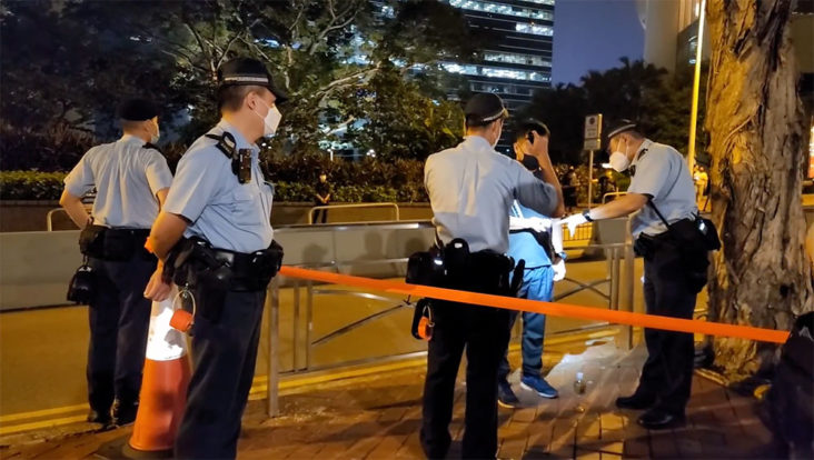 警方今天20日回覆查詢時,證實昨晚約9時30分,1名43歲姓彭本地男子在中區法院道一號附近,涉嫌作出具煽動意圖的行為,違反《刑事罪行條例》第九條被捕,他現正被扣留調查。至於為何有警方進入英領範圍執法,警方則無直接回應。