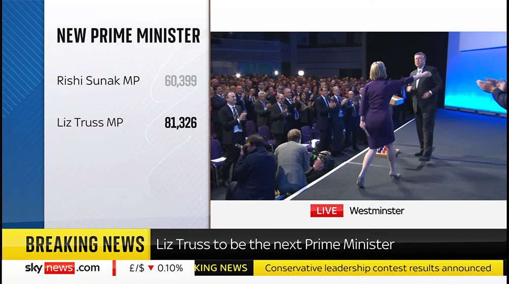 英國保守黨黨魁選舉結果已正式公佈,結果由大熱的卓慧思Liz Truss當選,接替Boris Johnson擔任新首相。卓慧思得票為81326,比率為57.4%,而辛偉誠Rishi Sunak得票則為60399,比率為42.6%。卓慧思在枱上笑言是史上最長的見工,亦感謝Boris Johnson完成脫歐工作,並且向普京說不,同時亦完成了疫苗的工作。卓慧思在星期日電訊報投稿時,已經表明會採取果斷行動,確保家庭和企業能夠渡過冬天。她亦表明會增加能源供應,立即採取行動應對不斷上漲的能源費用。