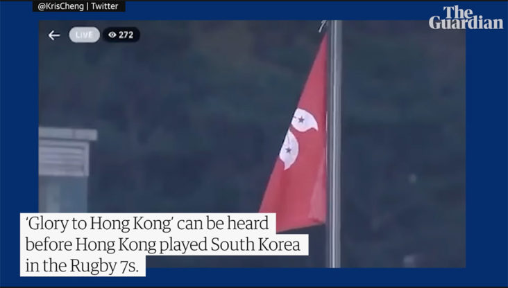 亞洲七人欖球賽第二站南韓一場賽事中,主辦單位竟然把香港2019年抗爭期間的《願榮光歸香港》當作香港的國歌。事發後,各建制派議員都爭相發聲,始終國安一事,比起什麼出軌行為更重要。沒有國,那有家,又那有港鐵?我們作為全港最愛國的媒體,強烈建議我們偉大的祖國中國,明天起就立即與韓國斷交,永不往來。香港警方國安處亦不應再等,把有關主辦單位的韓國人,立即引渡回港受審。更重要的是,國安處亦因今日起,在機場等候有關港欖領隊與球員,他們落機一刻就應被拘捕。