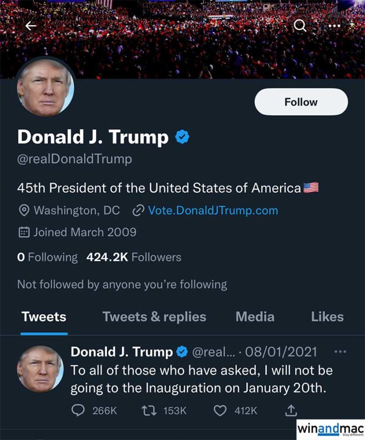 特朗普當時被一系列的社交媒體封鎖後,自行花錢開發了新的社交網絡Truth Social。當時已有傳媒問過,若Elon Musk把他的Twitter戶口解封,特朗普會否重返Twitter。特朗普表示不會,因他的支持者都在Truth Social。在本文章發佈時,特朗普的最後發表文章時間為2021年。