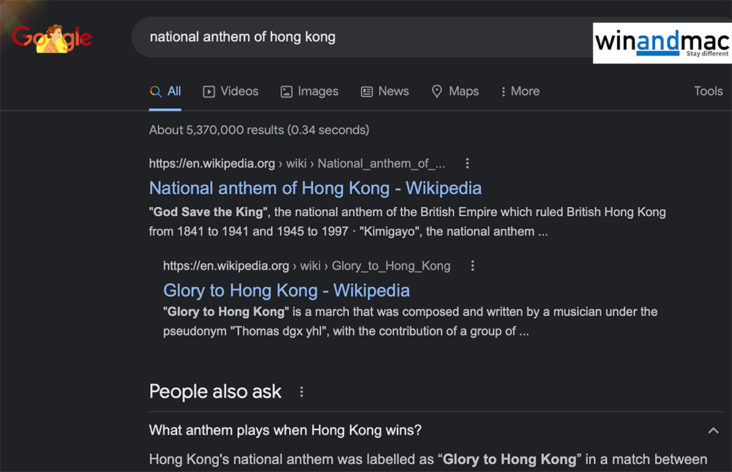 保安局局長鄧炳強今日出席記者會時,提到港府曾要求Google,在用戶搜尋香港的國歌時,把中國的義勇軍進行曲置頂,可惜最終被Google拒絕。他引述Google回覆,指Google回應稱這是演算法的結果,無法控制。鄧炳強則認為,「只要係Google落廣告,就可把信息放在相對高嘅位置」,又引用Google曾按歐盟法院指示,移除不準確的搜尋結果,但卻拒絕港府要求,明顯是雙重標準。鄧炳強直指Google傷害香港人的感情,說法令人難以接受,港府將會使用一切方法修正。