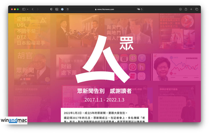 眾新聞於2022年1月初的時候,宣佈由4日起不再更新,並提到網站一段時間後關閉。當時正值蘋果日報與立場新聞突然被關閉事件,不少人當時嘆新聞自由消失。眾新聞停止更新後,已有網民希望大家記得backup。不經不覺,發展至今年2023年1月3日的時候,眾新聞在網站宣佈正式關閉,而其官方YouTube頻道與Facebook專頁亦已經消失。