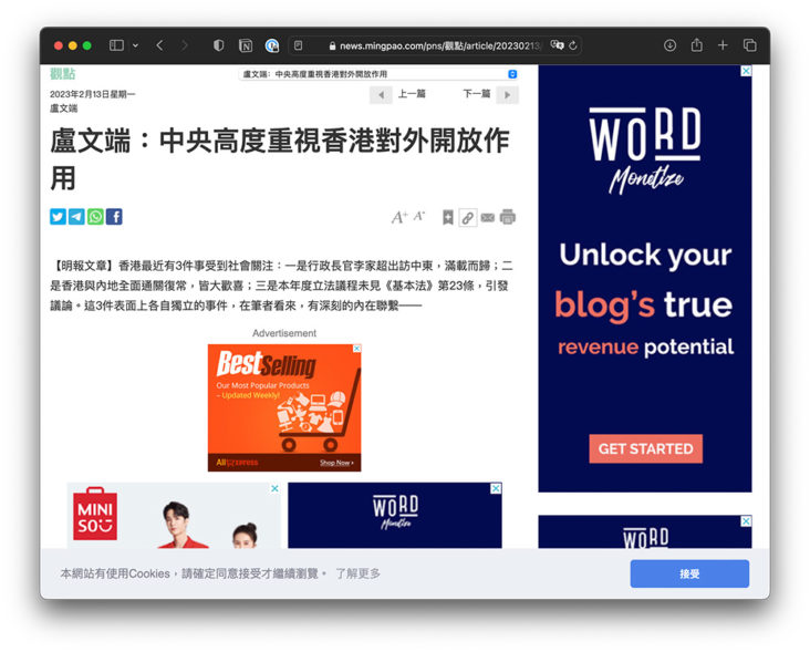 全國僑聯副主席盧文端於今日《明報》觀點發表文章,題為《中央高度重視香港對外開放作用》,當中提到23條諮詢立法。雖然港府官員提過2023年會開始諮詢,但盧文端則認為「連相關公眾諮詢亦不宜展開」。他擔心香港展開23條立法引發爭議,正值台灣下半年進入大選,有可能讓民進黨又「撿到槍」,藉此爭取選票,乘機抹黑一國兩制,蠱惑島內民眾,騙取選票,撈取執政權繼續搞「台獨」,阻礙祖國和平統一。