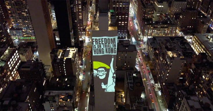 紐約大廈外牆投射撐港人動畫  向外國說香港真正的故事