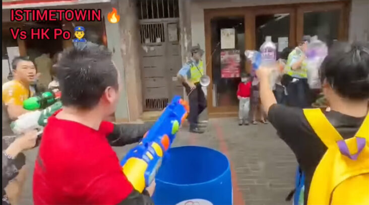 在泰國,潑水節向人潑水並令人濕身是一種祝福。不過,香港似乎有人拒絕這種祝福。除了有建制派人士針對本周日復辦的九龍城潑水節,大造文章指是「另一種黑暴」外,更有一名男子因此被捕。消息稱,該名男子來自YouTube頻道Bravedogdog,在其頻道中有影片可以見到,他曾向警員與TVB記者多次射水。九龍城警區刑事調查隊以公眾地方行為不檢,正式拘捕該名27歲姓曾男子。