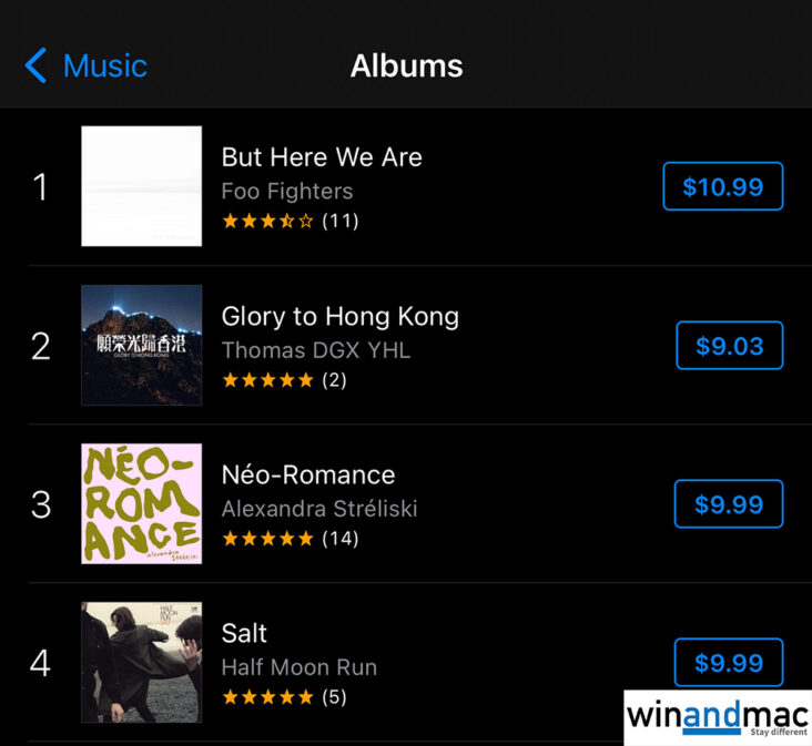 最有趣的是由今日開始,熱門的移民國家加拿大的iTunes音樂商店,Glory To Hong Kong《願榮光歸香港》專輯也急升至第二位,可謂揚威國際。