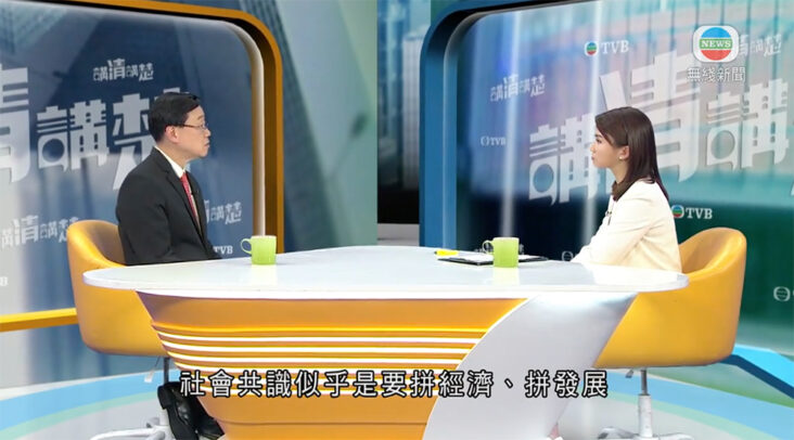 李家超近日接受無綫講清講楚節目訪問時,被主持問到市民有遊行權利但不用,「原因是因為汲取了2019年教訓」。李家超立即回應指這是對的,他指出社會共識似乎是要拼經濟、拼發展。至於社會復常後幾乎無反映訴求的遊行,李家超則應為不應這樣來量度,並指香港人權自由受《基本法》保障。他指出行使自己的權利和自由時,「不要忘記2019年有黑暴、有港版顏色革命,香港受嚴重破壞」。