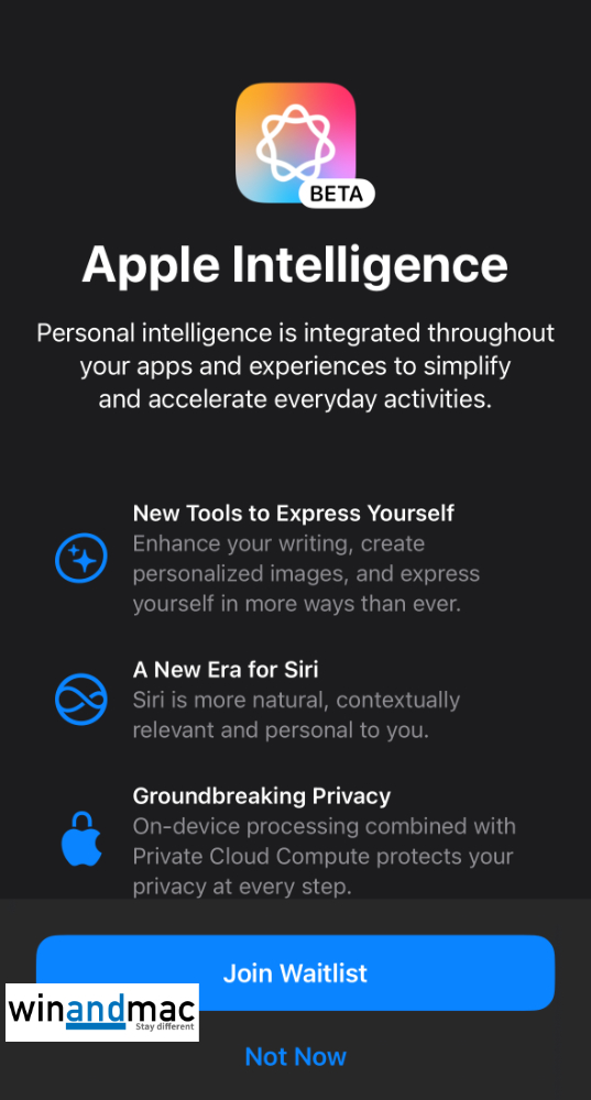 iOS 18.1測試版暫時只允許iPhone 15 Pro與15 Pro Max使用Apple Intelligence人工智能,用戶亦要把語言和地區都設定為美式英語,才可選擇開始登記加入輪候名單,蘋果其後就會批准用戶使用Apple Intelligence人工智能。小編在iOS 18.1測試版發佈一小時內選擇加入輪候名單,數十分鐘後就能使用。不過,綜合外國傳媒報道指,現在才選擇加入的話,可能要有排等。