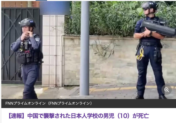 據日本當地新聞報道,一名10歲日籍小朋友於中國深圳上學時,被一名44歲男子用刀襲擊受重傷送院,襲擊發生在距離學校約200米的街道上。據稱,該名44歲男子已被當場拘捕。當時大陸官員仍然向傳媒表示,該名小朋友情況「穩定」。可是,今天日本駐廣州領事館證實,昨日(18日)該男童在上學途中遭到一名男子襲擊,受傷後持續在醫院接受治療,但最終於19日凌晨去世。這名男童是日本人學校的學生,這是一件非常悲傷的事情,想到其家屬,實在無法用言語表達。